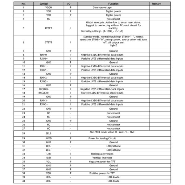 | Interface | 40pinLVDS |