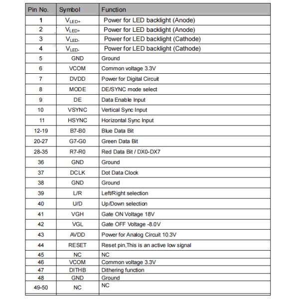 | 5 | 10.1" | HC101IKA0050-A79 | IPS | 1024*600 | 235*143*5.0mm | 222.72*125.28mm | 50pinRGB | 1000 | 1000 | -20~70℃ | -30~80℃ | |
