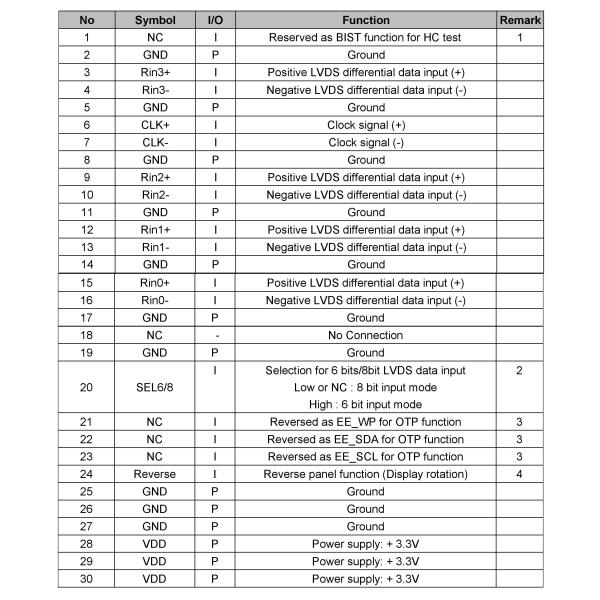 | Interface | 30pinLVDS |