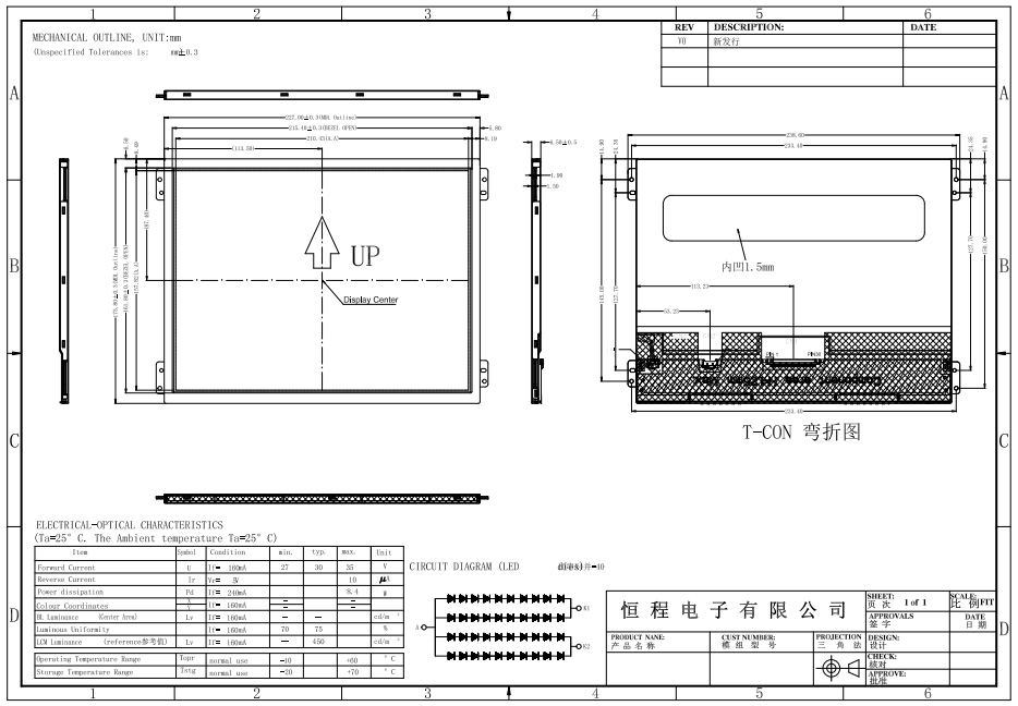 | 42 | 10.1" | HC101IZ30026-92 V.C | IPS | 1200*1920 | 164.43*254.40*4.58mm | 135.36*216.58mm | 40pinMIPI | 1000 | 280 | -10~60℃ | -10~60℃ | |